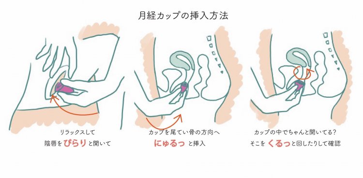 月経カップは「折りたたんで」挿入します。